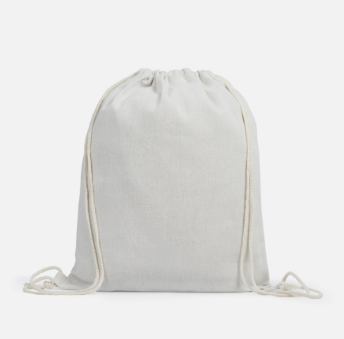 Mochila de cuerdas realizada en poliéster reciclado RPET con tacto algodón de 150 g/m².