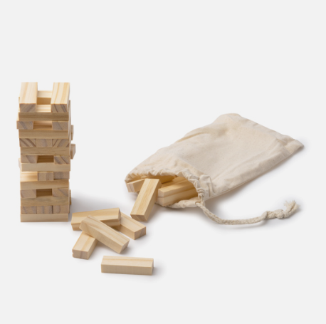 Juego de habilidad formado por 45 bloques rectangulares. Ideal para formar la torre y eliminar piezas sin derribarla.